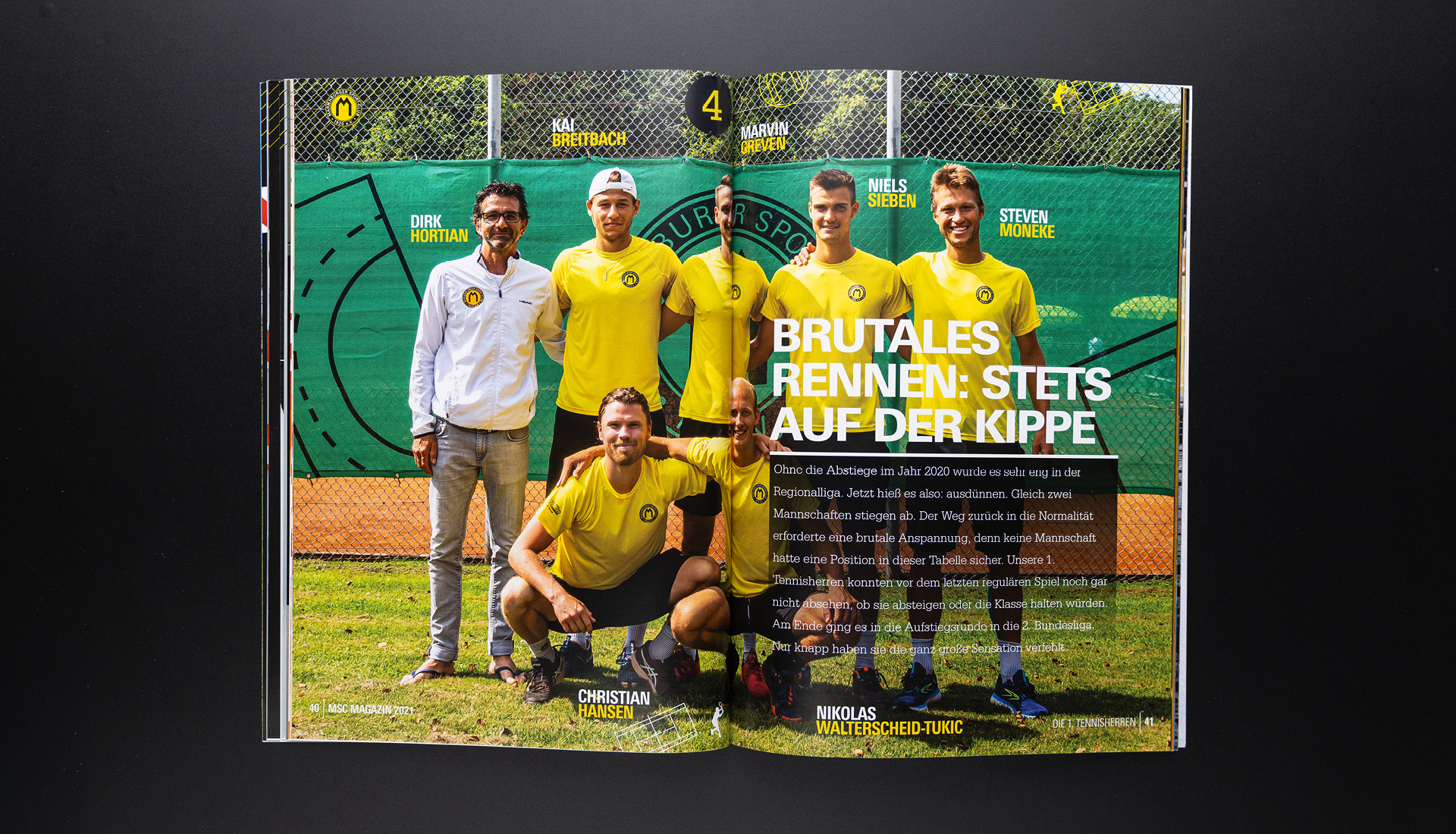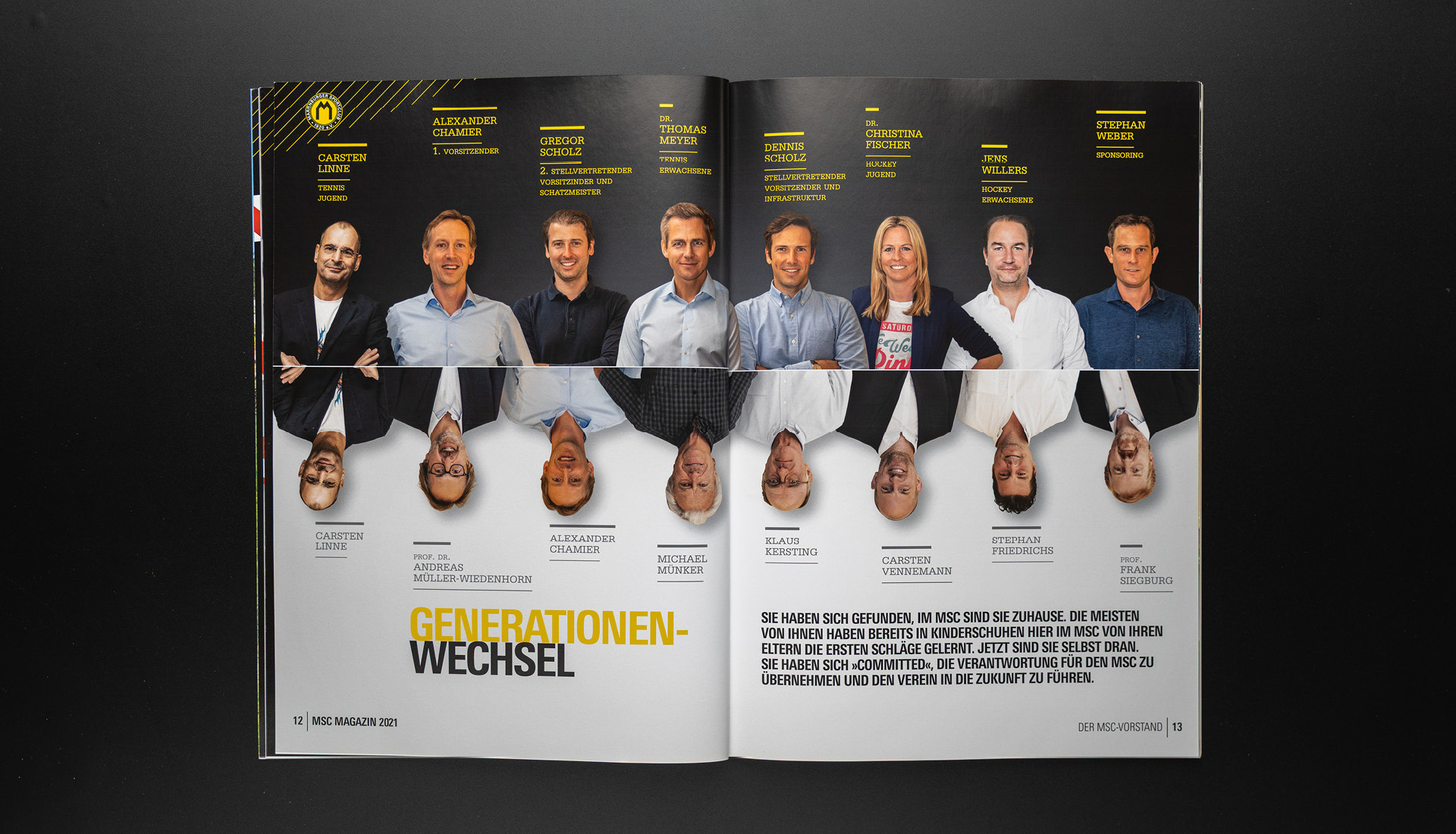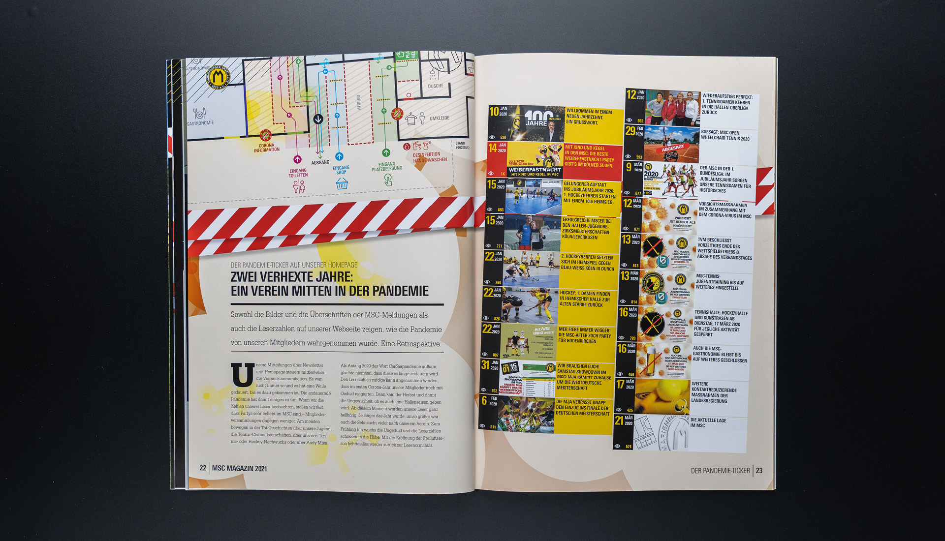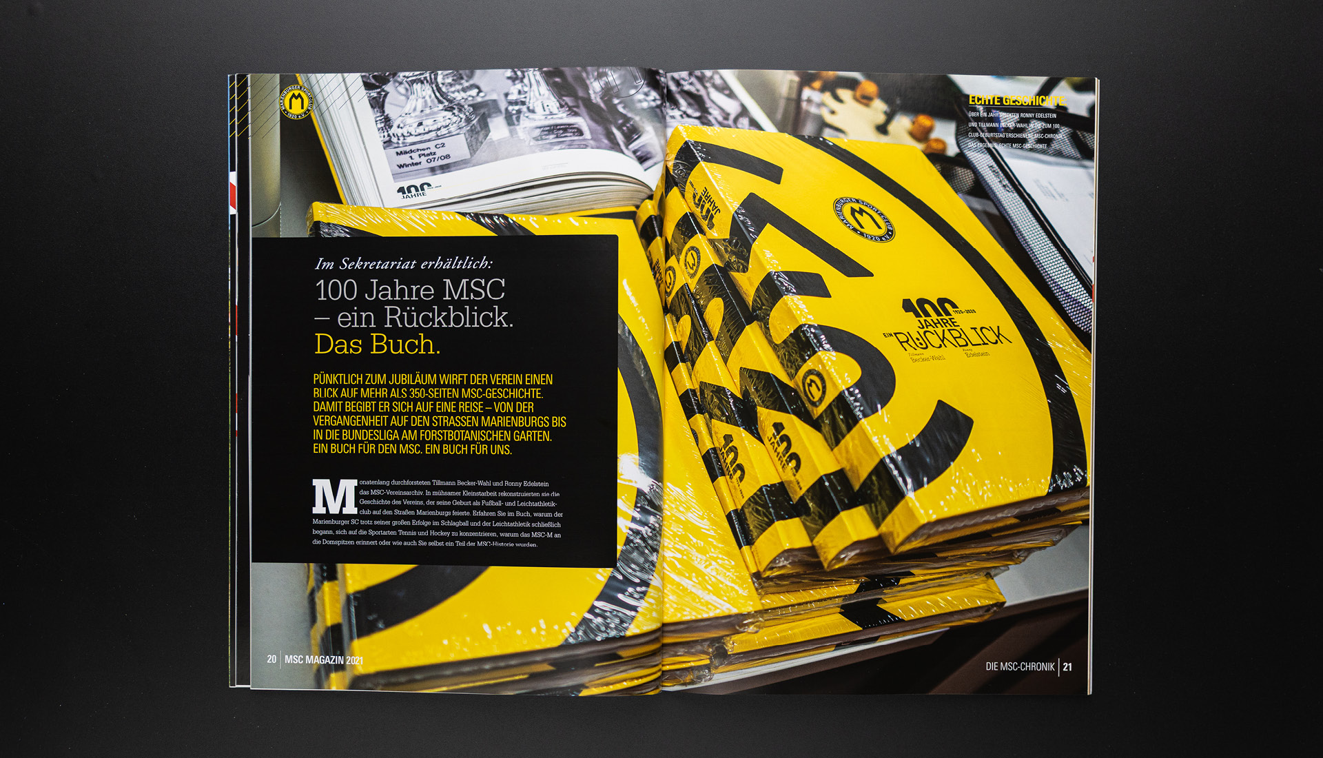 Nach dem Jubiläumsjahr und mitten in der Pandemie verzichtet das MSC Magazin 2021 auf große Rückblicke. Stattdessen dokumentiert es eine Zeit ohne Höhepunkte: fragmentiertes Vereinsleben, wirtschaftliche Realität und vorsichtige Bewegung unter Auflagen. Ein stilles Magazin über Zusammenhalt, Übergang und das Weitergehen ohne Jubel.