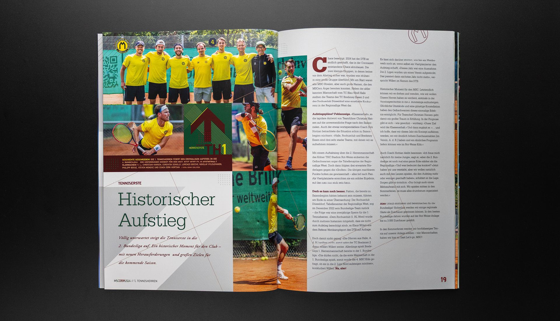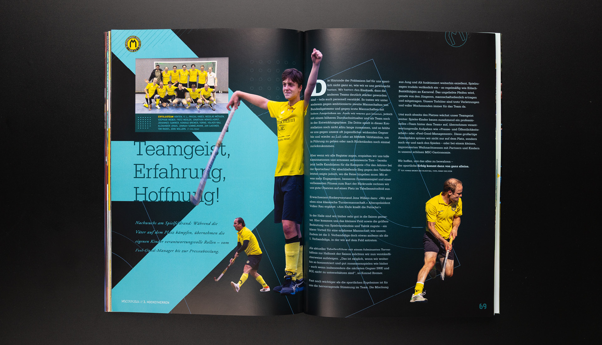 »Kaum hatten sie die Jugend hinter sich gelassen, schafften sie mit der 1. Herren 2019 den Wiederaufstieg in die 2. Bundesliga – ein Moment, auf den der MSC elf Jahre lang gewartet hatte. 2008 waren manche von ihnen noch nicht einmal Minis. Nun, fünf Jahre später, traten sie zum vierten Mal in Folge an, um den Klassenerhalt zu verteidigen. Aus den Minis wurden Knaben, aus den Knaben Männer. Sie legten in allen Belangen zu: an Körperkraft, an Erfahrung, an Willensstärke. Doch auch die Konkurrenz schlief nicht – jede kleine Schwäche wurde bestraft.